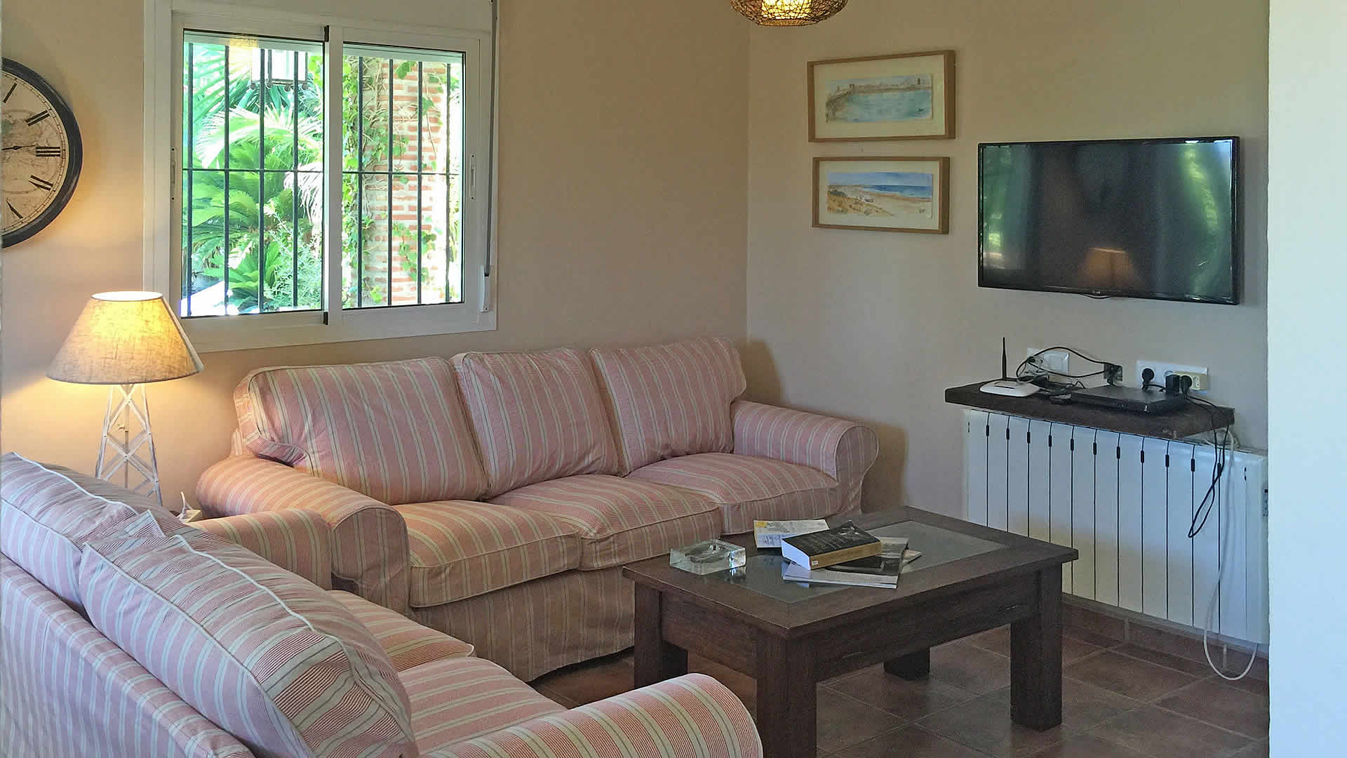 Het huis is gelegen in een rustige, landelijk bebouwde buitenwijk van Conil de la Frontera, 10 minuten lopen van het strand. Op nog gunstiger loopafstand is een kleine campingsupermarkt, en naar het centrum van Conil de la Frontera is het vijf minuten rijden. Door zijn ligging is dit vakantiehuis een prima optie voor wie een strandvakantie wil combineren met interessante trips naar steden als Cádiz, Sevilla of een bezoek aan de'witte dorpen'. De goed verzorgde, aantrekkelijke tuin met een groot gazon biedt goede privacy. Het terras aan de voorzijde van de villa is een perfecte plek om buiten te eten en het privé zwembad (4,5 x 7 meter) kan worden verlicht om zo te kunnen zwemmen tot in de late uurtjes! Het zwembad ligt in een omheinde tuin, wat het extra veilig maakt voor kinderen.