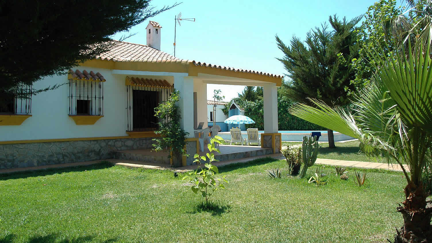 Een heerlijk rustig verblijf met aantrekkelijke volgroeide grastuinen, landelijk gelegen in de omgeving van Conil de la Frontera (4 kilometer) en slechts 5 minuten rijden van het witte zandstrand en heldere blauwe water van Cala de Aceite (1.7 kilometer). Een ideaal verblijf om een rustige vakantie te combineren met boeiende excursies naar de prachtige steden van Andalusië: Sevilla, Cadiz en Jerez de la Frontera. Rondom het huis ligt meer dan 1000m2 volgroeide tuin en het huis heeft een eigen zwembad van 9 x 5 meter, compleet met ligstoelen. Er is een barbecue en in de luwte van de schaduwrijke veranda is het heerlijk buiten eten. Kortom: u vindt hier alle ingrediënten voor een heerlijke vakantie!