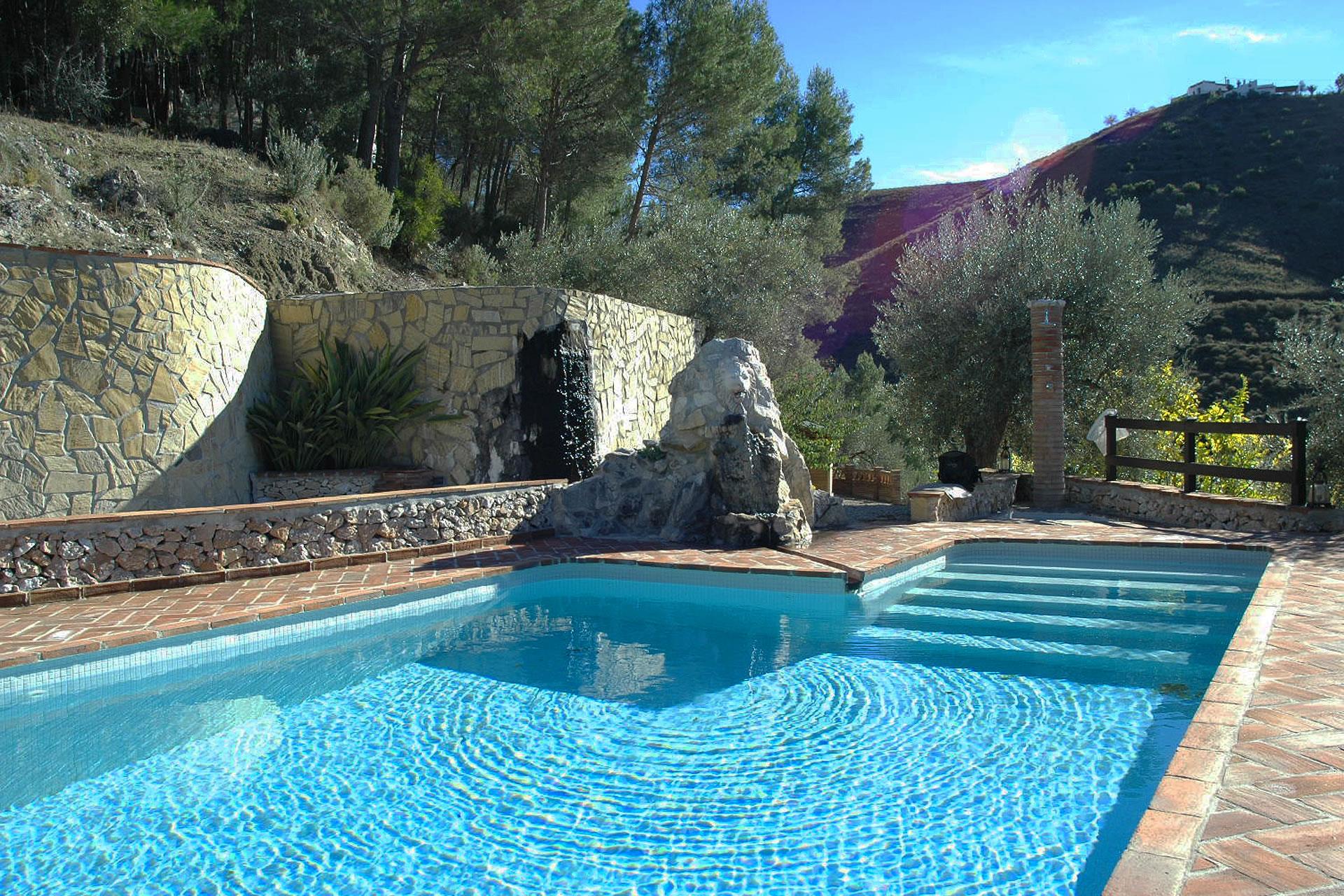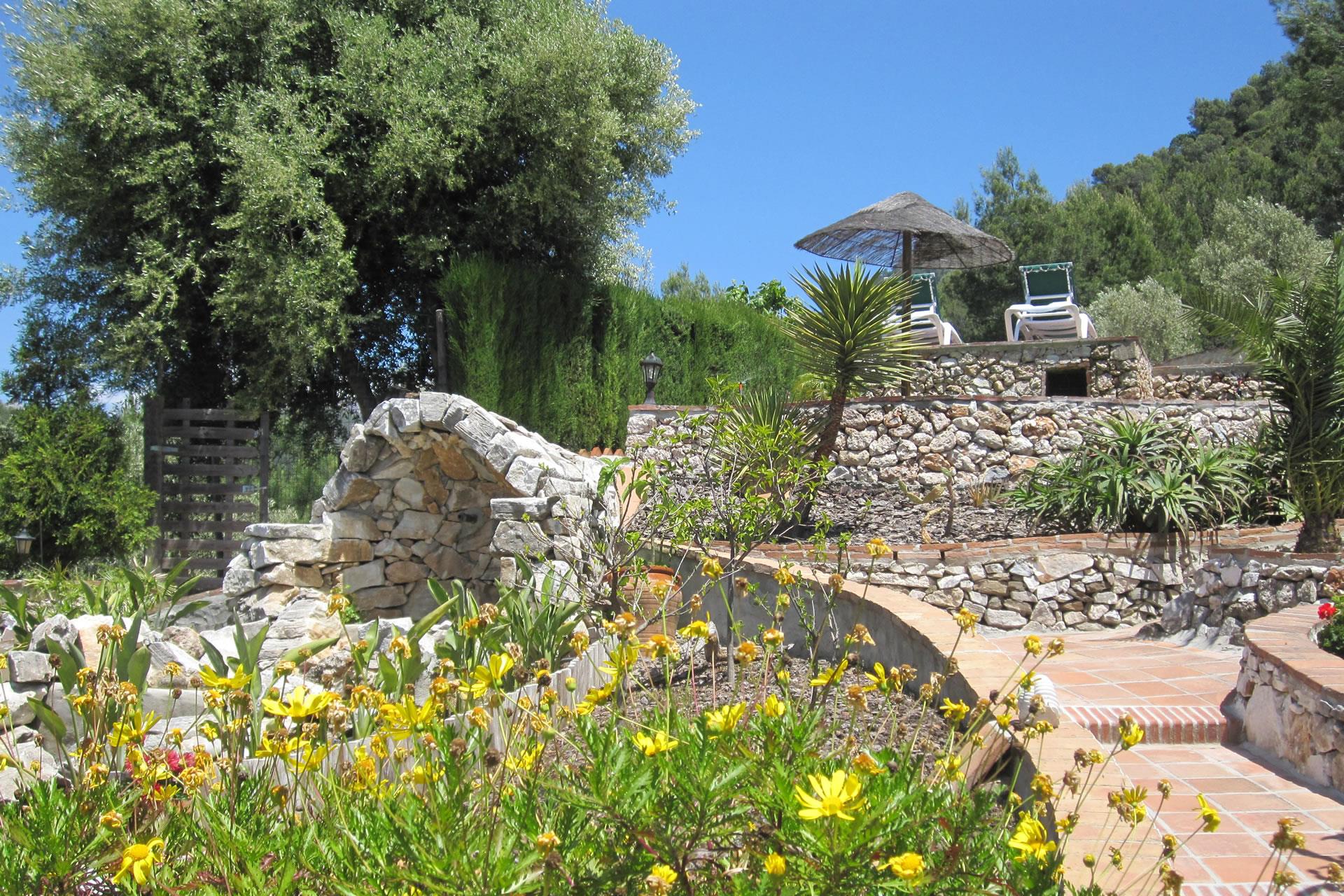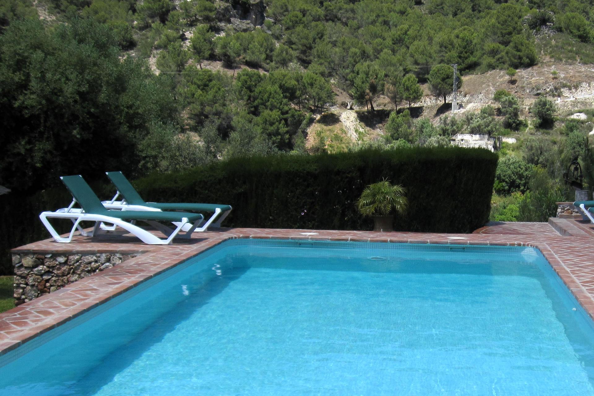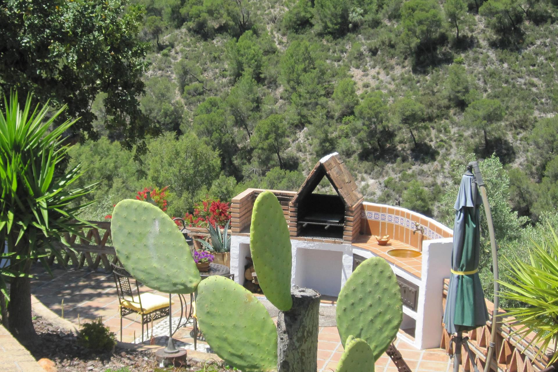 Rustiek, privé en landelijk. Dat is de essentie van deze heerlijke locatie. Na een mooie autorit door de bergen ontdekt u deze verborgen vallei, 10 minuten rijden van Frigiliana. De toegangsweg heeft een paar scherpe bochten, maar is volledig verhard en niet moeilijk om te rijden. De "cortijo" is omgeven door een grote tuin met verschillende zithoekjes met bloemen en bomen. Er is een aantrekkelijk barbecuegedeelte en een schaduwrijke veranda met meubilair. Het privé zwembad van 7 x 4 meter (met ligstoelen) ligt op een wat hoger niveau met panoramische uitzichten over het dal en over het 1 kilometer verderop gelegen buurtschap El Acebuchal, een klein dorpje met een interessante geschiedenis: nadat de inwoners in 1949 door het Franco regime waren verdreven bleef El Acebuchal lange tijd onbewoond en raakte in verval. Totdat in 1998 een nakomeling van een van de oorspronkelijke bewoners er een huis kocht en anderen aanmoedigde om de 32 huizen, het stadhuis, de kapel, de bars en de straten waaruit het dorp bestond te helpen opbouwen. Om het buurtschap weer terug te brengen in zijn oude glorie werd de renovatie zeer zorgvuldig uitgevoerd, met oog voor detail. Geen winkels hier, maar wel een bar-restaurant dat regionale specialiteiten serveert, zoals wild zwijn en geitengerechten. In Frigiliana, een van de z.g. witte dorpen en een bezoek meer dan waard, vindt u een uitgebreid aanbod aan winkels, tapasbars en restaurants. Bezoek aan Nerja (9 kilometer) is eveneens de moeite waard: u kunt er genieten van de mooiste stranden en een duikje nemen in de Middellandse zee.