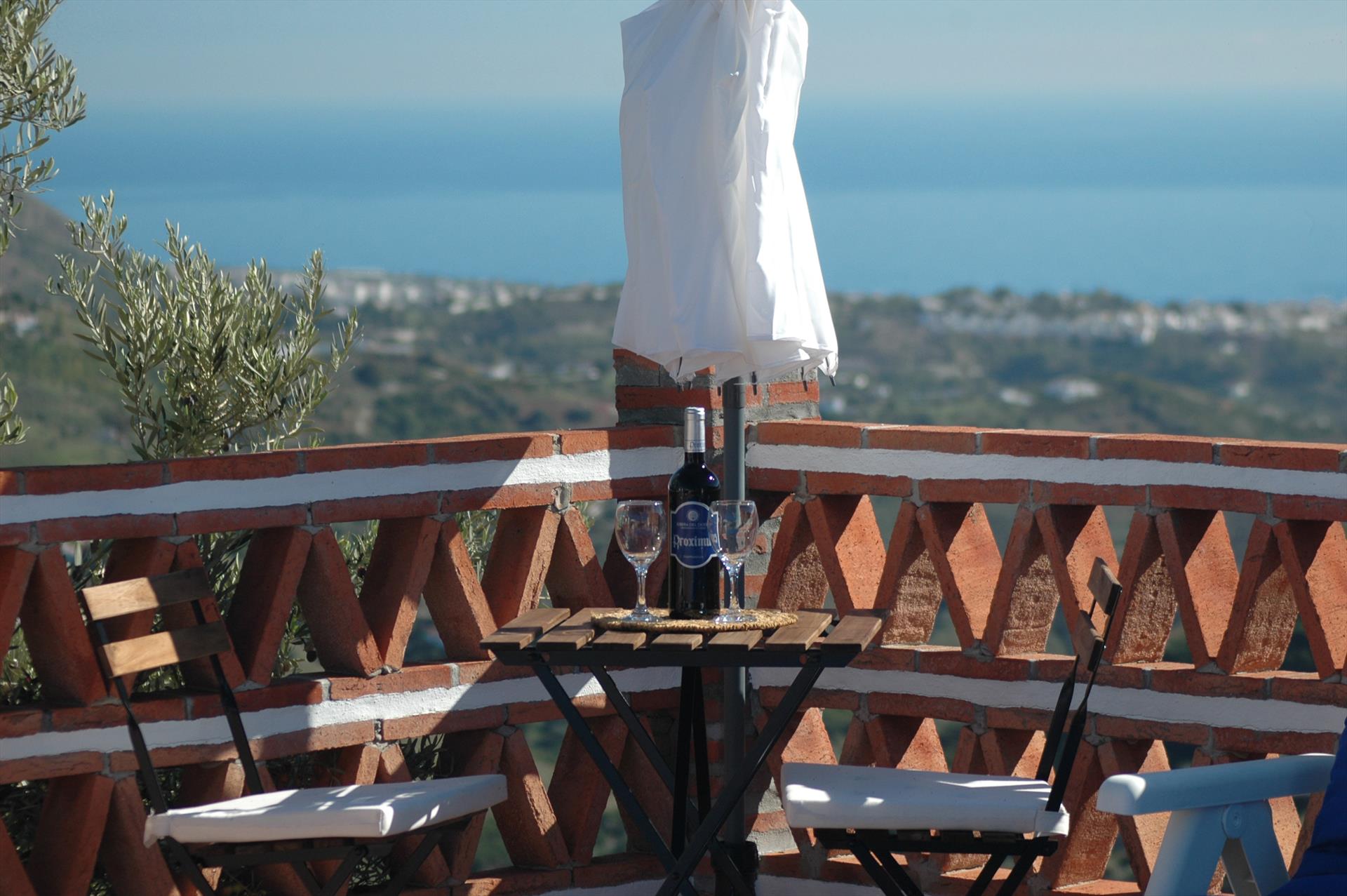 Dit schattige Andalusische casita is prachtig gelegen tegen een berghelling vanwaar u geniet van onvergetelijke uitzichten over het omringende landschap en verder tot aan de Middellandse Zee. Vanaf Frigiliana leidt een bergweg naar het noorden, richting het dorp Torrox. Na ca.3 kilometer leidt een verhard en bochtig pad met een paar steile stukken naar het huis beneden; een exclusieve ambiance en 100% privacy (een auto met een sterkere motor is aanbevolen). Bij het huis ligt een mooi zonneterras met witte kiezelstenen details rondom een uitnodigend zwembad van 6 x 4 meter en 1.50 – 1.80 meter diep. Vanaf het zonne-terras aan de voorkant (met ingebouwde barbecue en ligstoelen) geniet u van fantastische zeezichten.