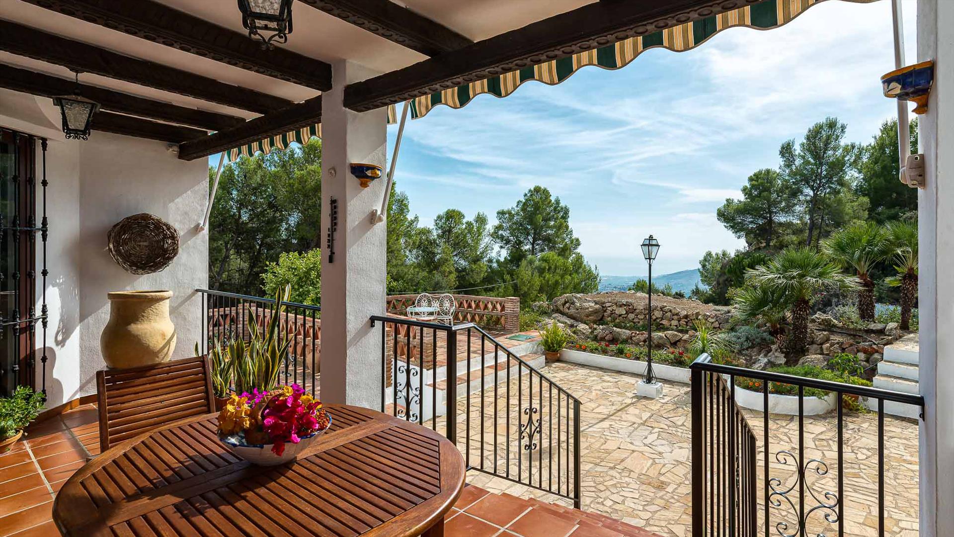 De villa heeft 4 slaapkamers en 3 badkamers, verdeeld over 2 woonlagen. De accommodatie biedt veel privacy, een mooie tuin met gazon en bomen, een prachtig zwembad, prachtig uitzicht op het dal, het platteland en de bergen en mooi uitzicht op de stad. Het comfort en de nabijheid van mogelijkheden om te sporten en uitgaansgelegenheden maken dit een ideale villa voor uw vakantie in Spanje met familie of vrienden.
