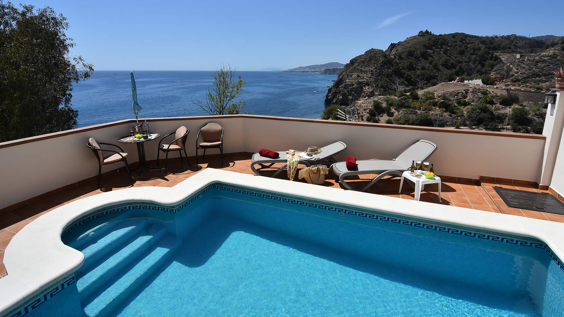 Dit is een charmant Andalusisch huisje met schitterend uitzicht op zee. Vanaf uw balkon en privé zwembad overziet u de hele kust. Op een paar minuten lopen vindt u een heerlijk rustig strand! Lekker buiten eten doet u op de besloten patio met barbecue of in één van de leuke restaurantjes in Maro of Nerja. Dit huis biedt alle ingrediënten voor een onvergetelijke vakantie op een idyllisch gelegen plek.