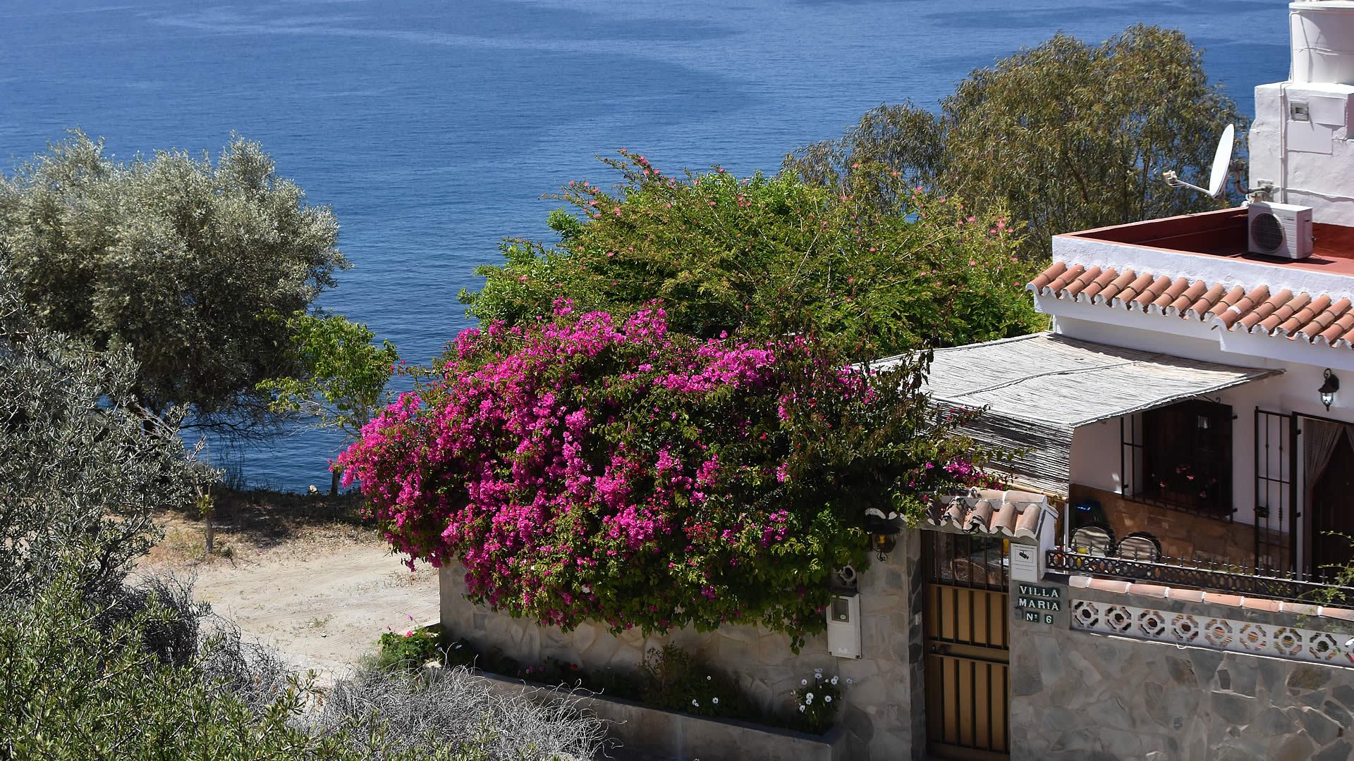 Het dichtstbijzijnde strand ligt op 5 minuten lopen en is enigszins verscholen zodat er zelfs in de zomer een relatieve stilte heerst. Het sfeervolle dorpje Maro (2,5 km) ligt op slechts 5 minuten rijden en heeft een aantal leuke tapasbars, restaurants en een kleine supermarkt. Iets verderop ligt de plaats Nerja, een populaire badplaats met een gezellig centrum en een bruisend uitgaansleven. Een bezoek aan het Moorse Alhambra paleis in Granada behoort tot de mogelijkheden en is iets meer dan een uur rijden. Verder zijn de traditionele dorpen in de Axarqui een bezoekje waard; in het dorp Competa kunt u de zoete Malagawijn proberen. Belangrijk: vanaf het zwembad loopt een rots steil omlaag. Kinderen zullen dus toezicht nodig hebben.