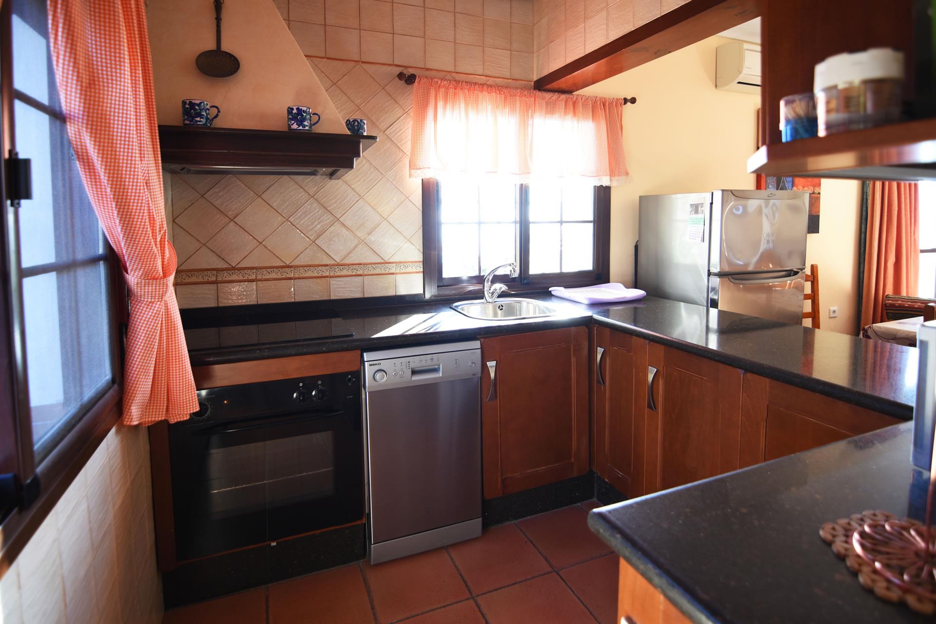 Het huisje is geheel gelijkvloers en gezellig ingericht. De woonkamer met eethoek heeft een open haard, 6 persoons eettafel, slaapbank, fauteuil en televisie met satellietontvangst. Aan de woonkamer grenst een balkon zodat u vanuit de woonkamer uitzicht op zee heeft. De open keuken is goed uitgerust met een 4-pits keramisch kookplaat, oven, magnetron, koelkast/diepvriezer, wasmachine en een vaatwasser. Er is een slaapkamer met een tweepersoonsbed en een slaapkamer met twee eenpersoons bedden. De badkamer is voor gezamenlijk gebruik en voorzien van wc, douche en wastafel. In de hoofdslaapkamer is een kluisje aangebracht. De accommodatie is geschikt voor verblijf in het laagseizoen: in beide slaapkamers is een electrische radiator aanwezig, in de woonkamer een gaskachel open haard. Er is tevens air conditioning en een kluisje in het huis aanwezig.