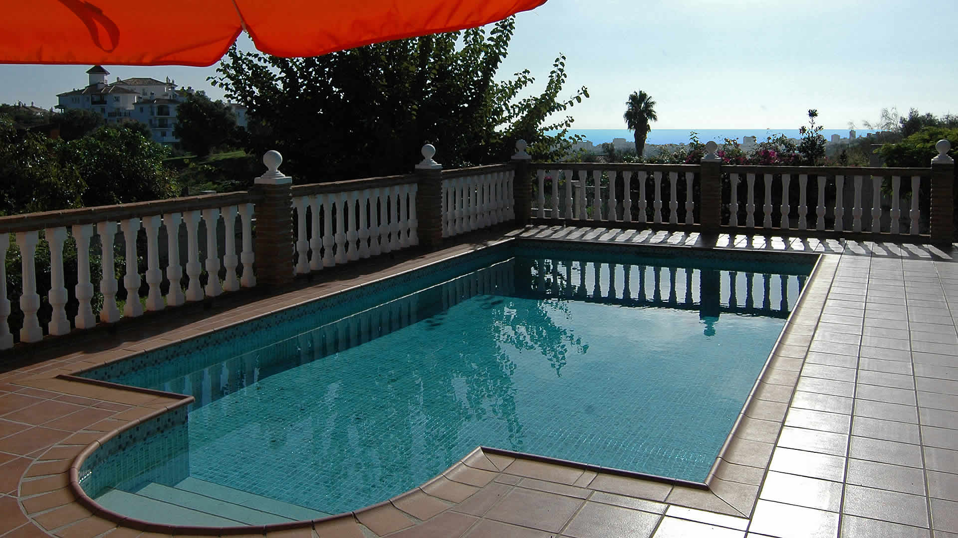 Eén van de kenmerken van villa La Palma is de opvallend mooie, volgroeide tuin. Er zijn inderdaad palmbomen, maar ook fruitbomen en allerlei soorten bloemen en planten. De villa ligt in het afwisselende landschap tussen Mijas (5 kilometer) en Fuengirola (4 kilometer), een heerlijk landelijk verblijf met zeezicht en veel ruimte rondom het huis, perfect voor het buitenleven. Het privé zwembad van 8 x 4 meter ligt op het zuiden en is omgeven door een zonneterras met panoramisch uitzicht over het omringende landschap en de kust van Fuengirola. Een volmaakt decor om te genieten van een drankje of een maaltijd buiten. Het patiomeubilair, de barbecue en de ligstoelen staan voor u klaar! Wilt u zich terugtrekken uit de warme middagzon, mijmer dan tijdens een lome siësta even weg op de overdekte veranda.