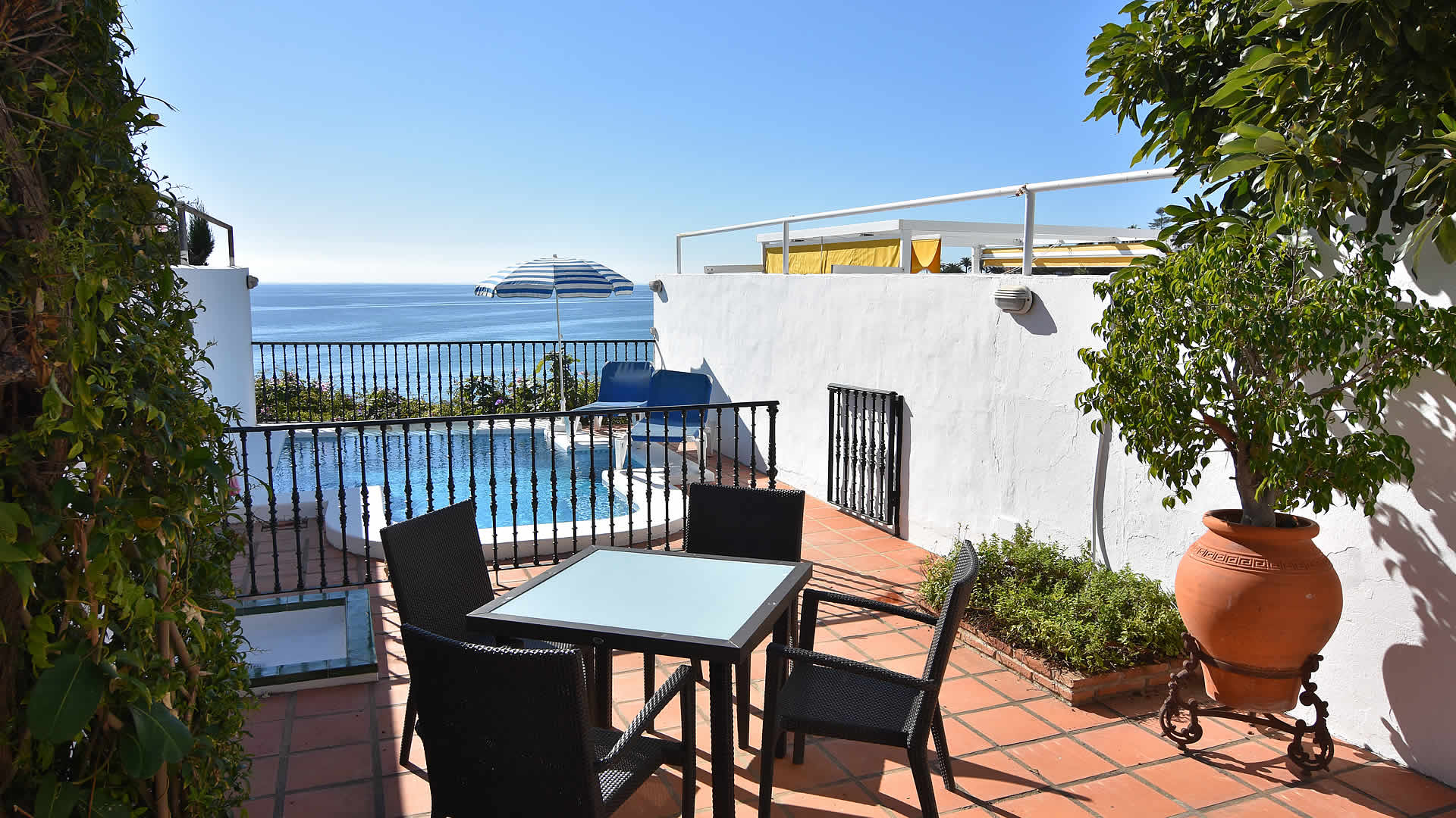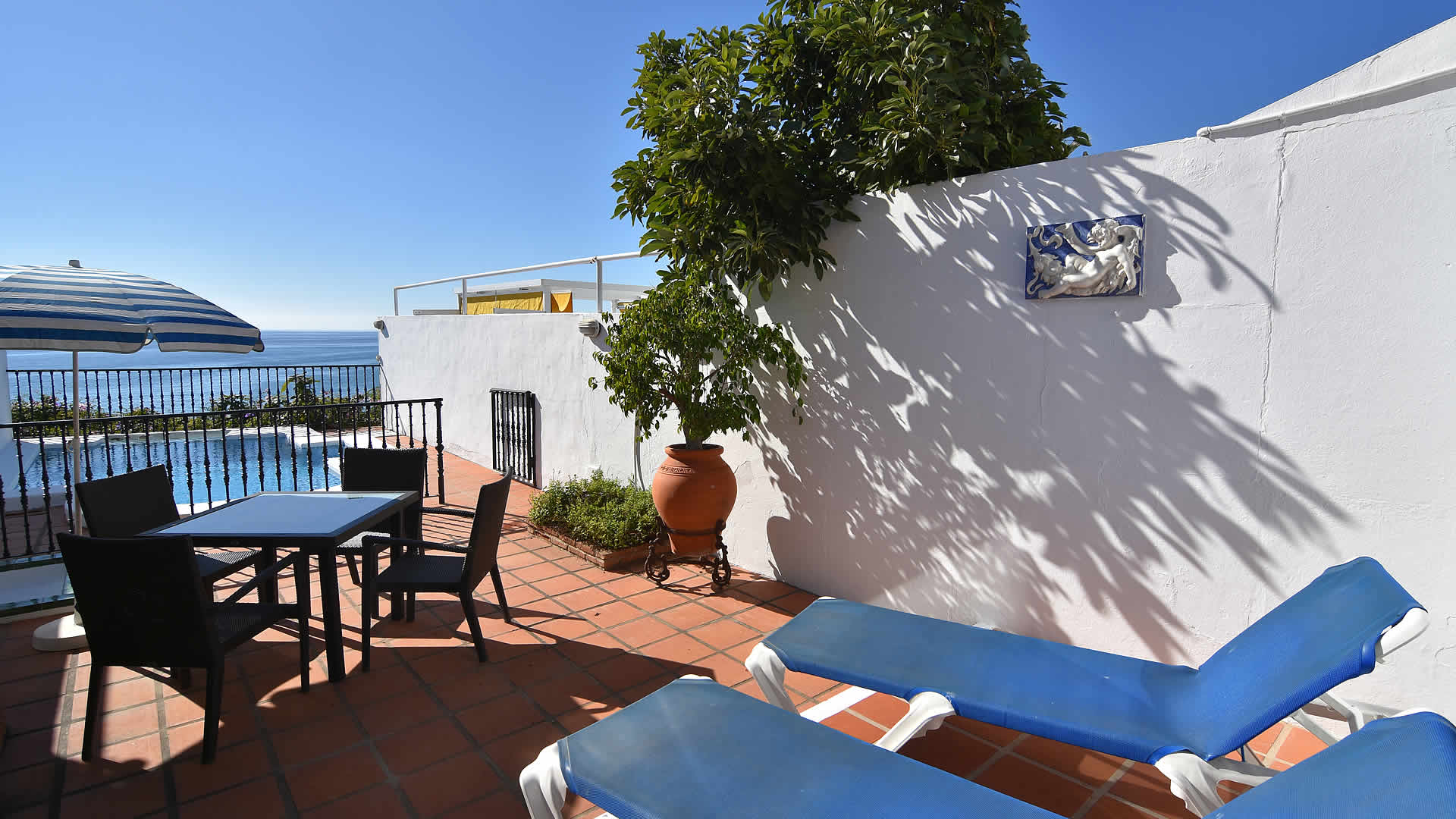 Loopt u even mee? We slaan links af, lopen 80 meter, trap naar beneden en... we zijn op het strand! In plaats van het strand kunt u natuurlijk ook genieten van een koud biertje op een nabij gelegen terras. Het is allemaal mogelijk: dit vakantiehuis ligt in de Calle Carabeo, hartje Nerja. Geniet van een eigen zwembad en van het verbluffend mooie zeezicht. Voor u verder leest: geschikt voor max. 4 volwassen en 2 kinderen.