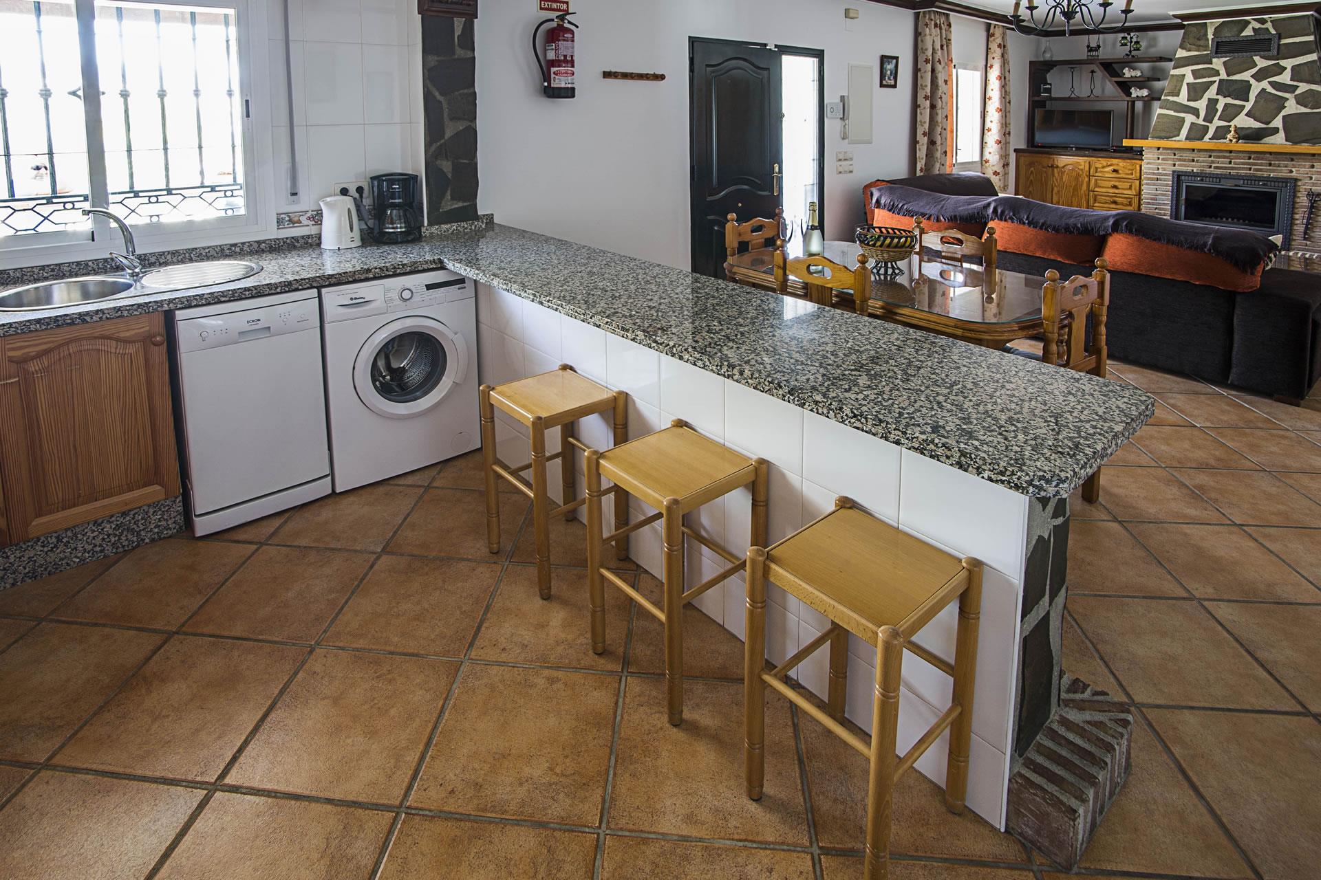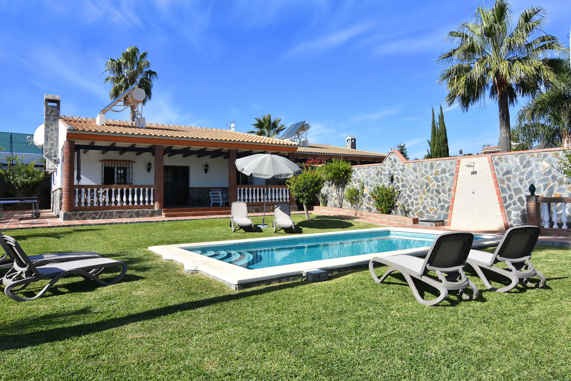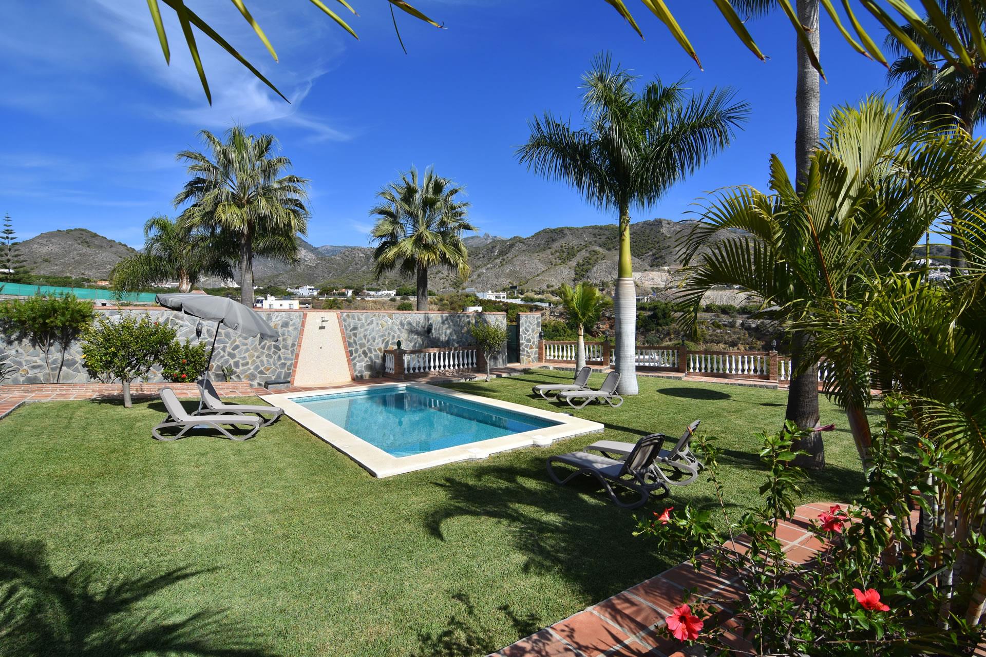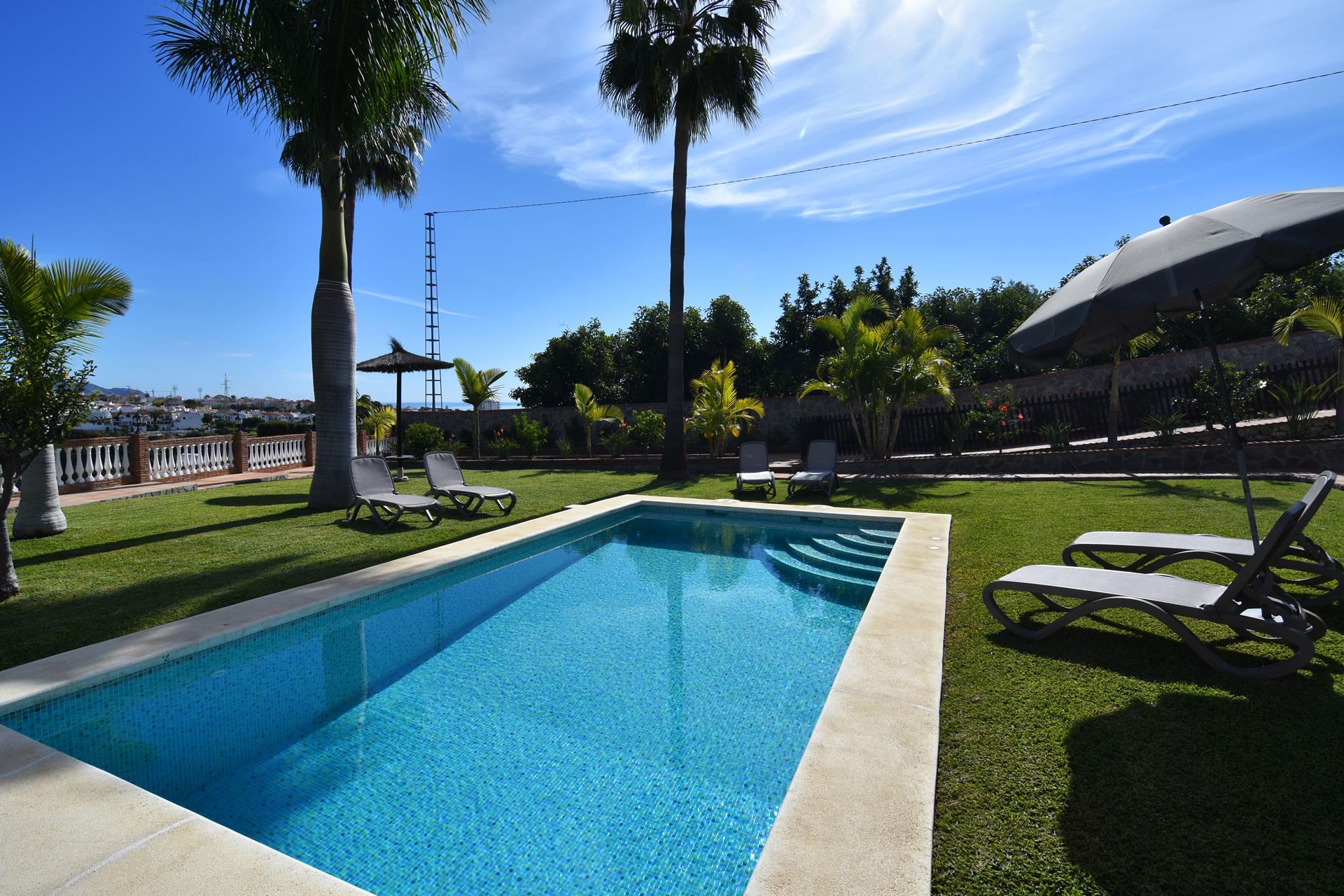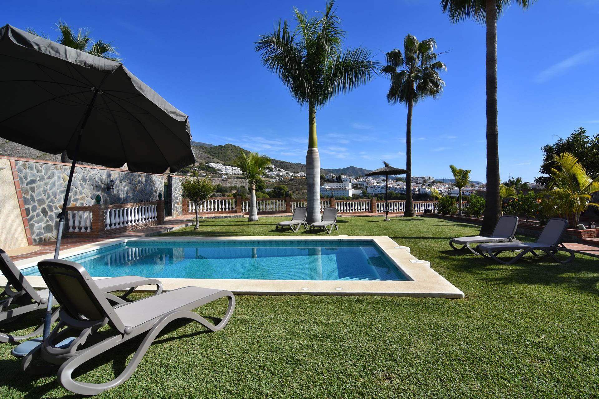 De villa is bereikbaar via een eigen weg vanaf de elektronisch bediende toegangspoort. U kunt buiten eten op het mooie, schaduwrijke terras dat aan het huis grenst, een barbecue staat voor u klaar! Zonaanbidders zullen gecharmeerd zijn van het gazon dat het verleidelijke privé zwembad (8 meter lang x 4 meter breed; 1,2 tot 2 meter diep), compleet met ligstoelen. Vanaf hier hebt u een schitterend uitzicht, óver de toppen van de avocadobomen, over het landschap en de heuvels die Nerja omringen.