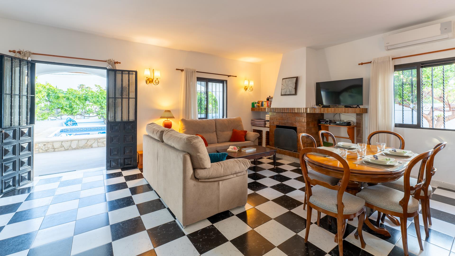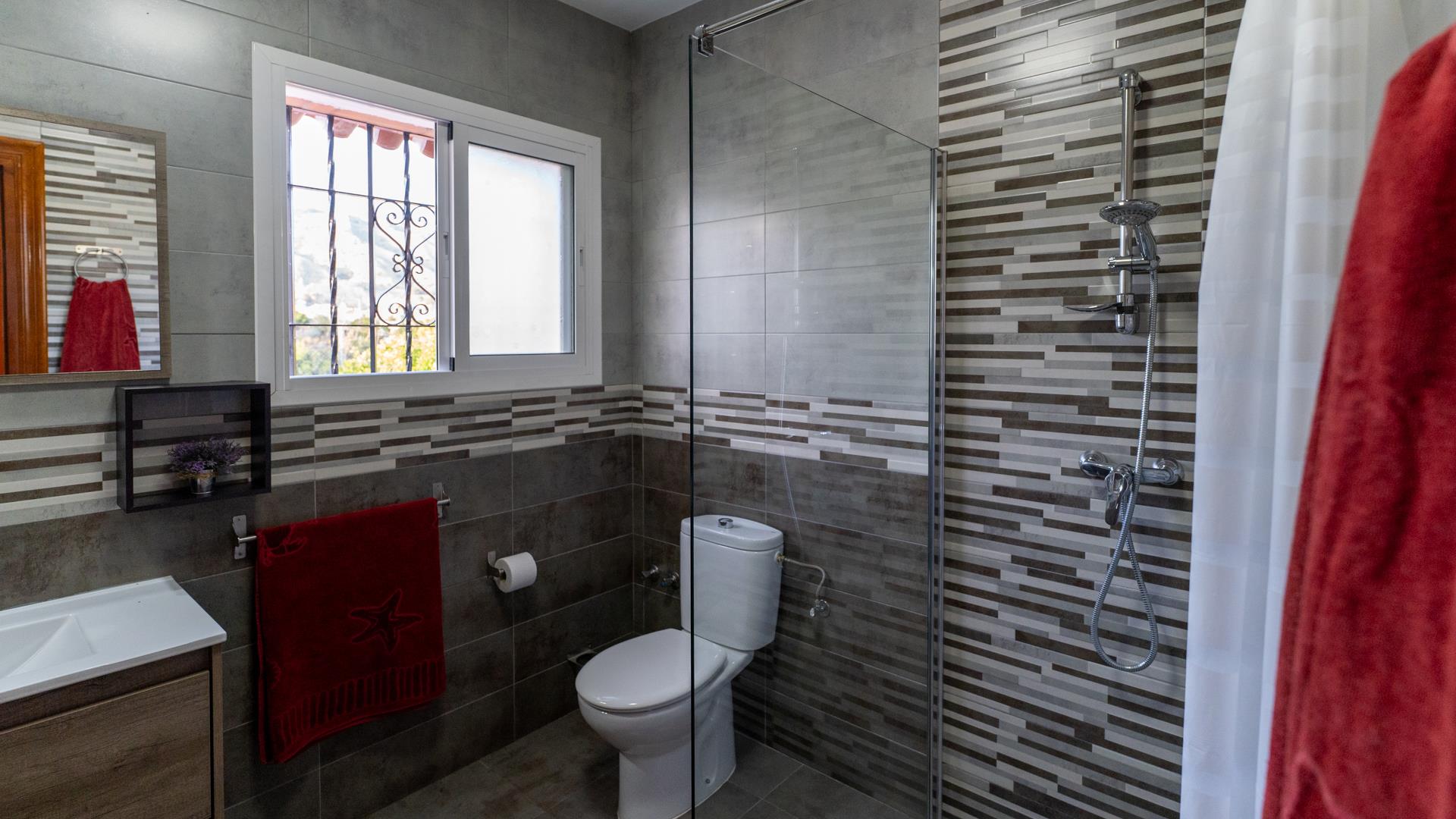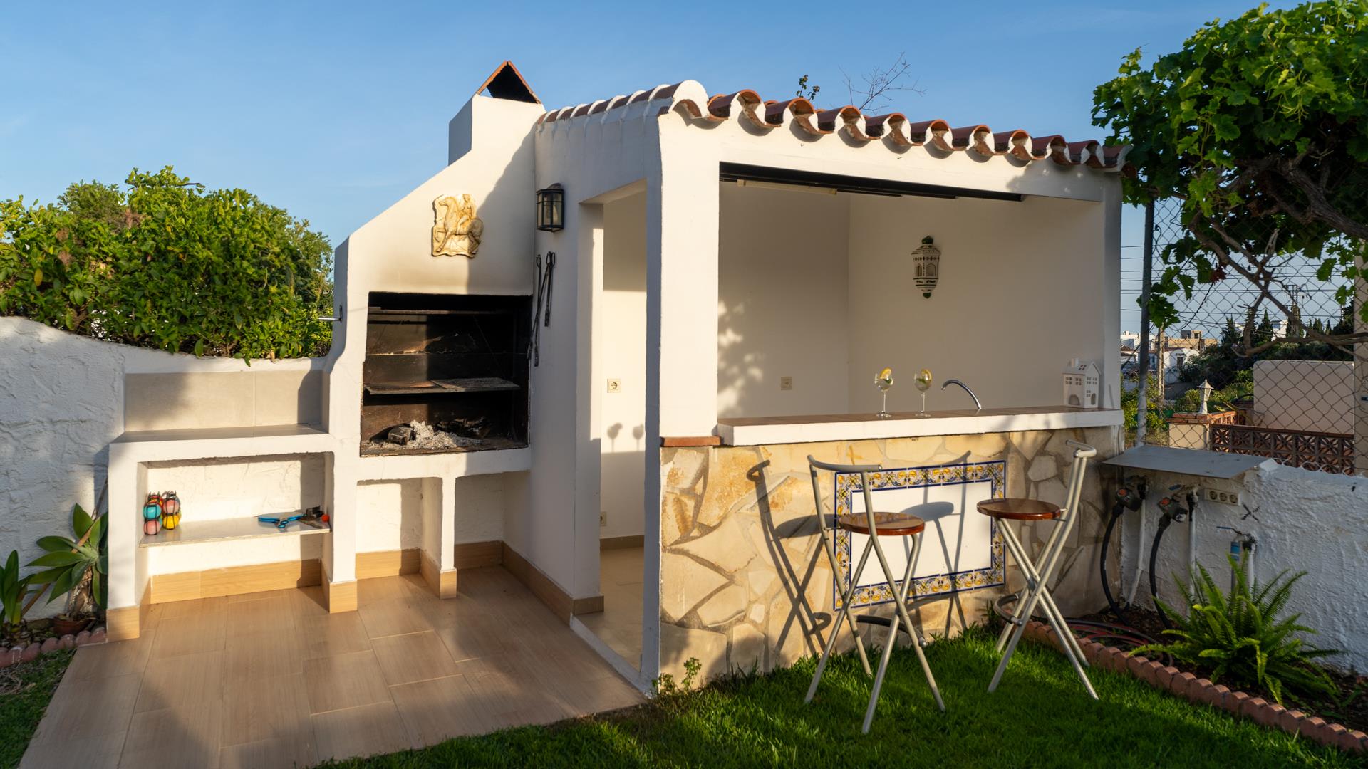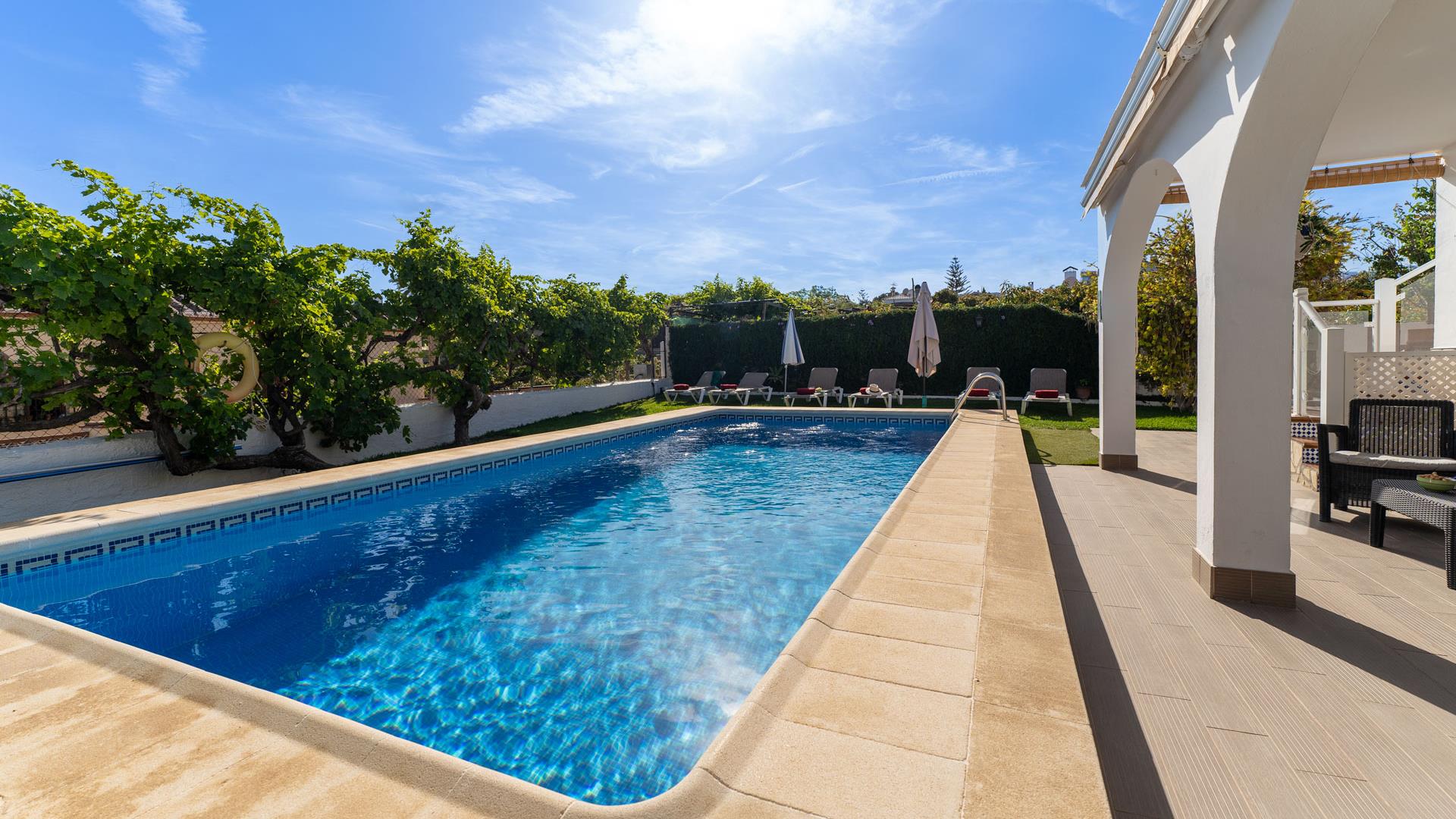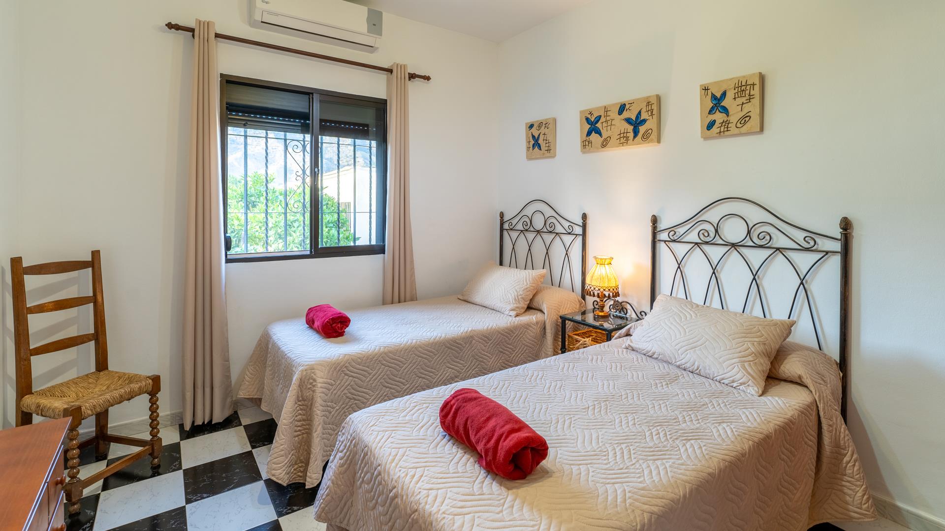 Bij deze semi landelijk gelegen villa op slechts 2 kilometer van Nerja kunt u genieten van inspirerende uitzichten over het landschap rondom en van de rustige omgeving; een aangenaam vooruitzicht voor een zorgeloze vakantie! Op een steenworp afstand vindt u een panificadora (broodfabriekje) en op 800 meter een Lidl supermarkt. De villa wordt omgeven door witte muren en door gazons die bijdragen aan een gevoel van privacy. Ze is toegankelijk via een parkeerplaats voor 2 auto’s en tevens via een aan de voorkant van het huis zichtbaar pad, dat door de tuin naar het zwembad loopt. Het privé zwembad van 7x4 meter heeft een iets verhoogde ligging en wordt afgegrensd door een goed geproportioneerd gazon, een ideale speelplek voor kinderen. Een mooi overwelfd terras loopt over de hele voorkant van de villa en de ingebouwde barbecue is handig als u buiten wilt eten. Op het grote dakterras met adembenemend uitzicht over het omliggende landschap is het heerlijk zonnebaden! Kortom: een kwalitatief uitstekende villa met een perfecte ligging om in alle rust bij te komen en toch gebruik te maken van de vele voorzieningen van het nabijgelegen Nerja.