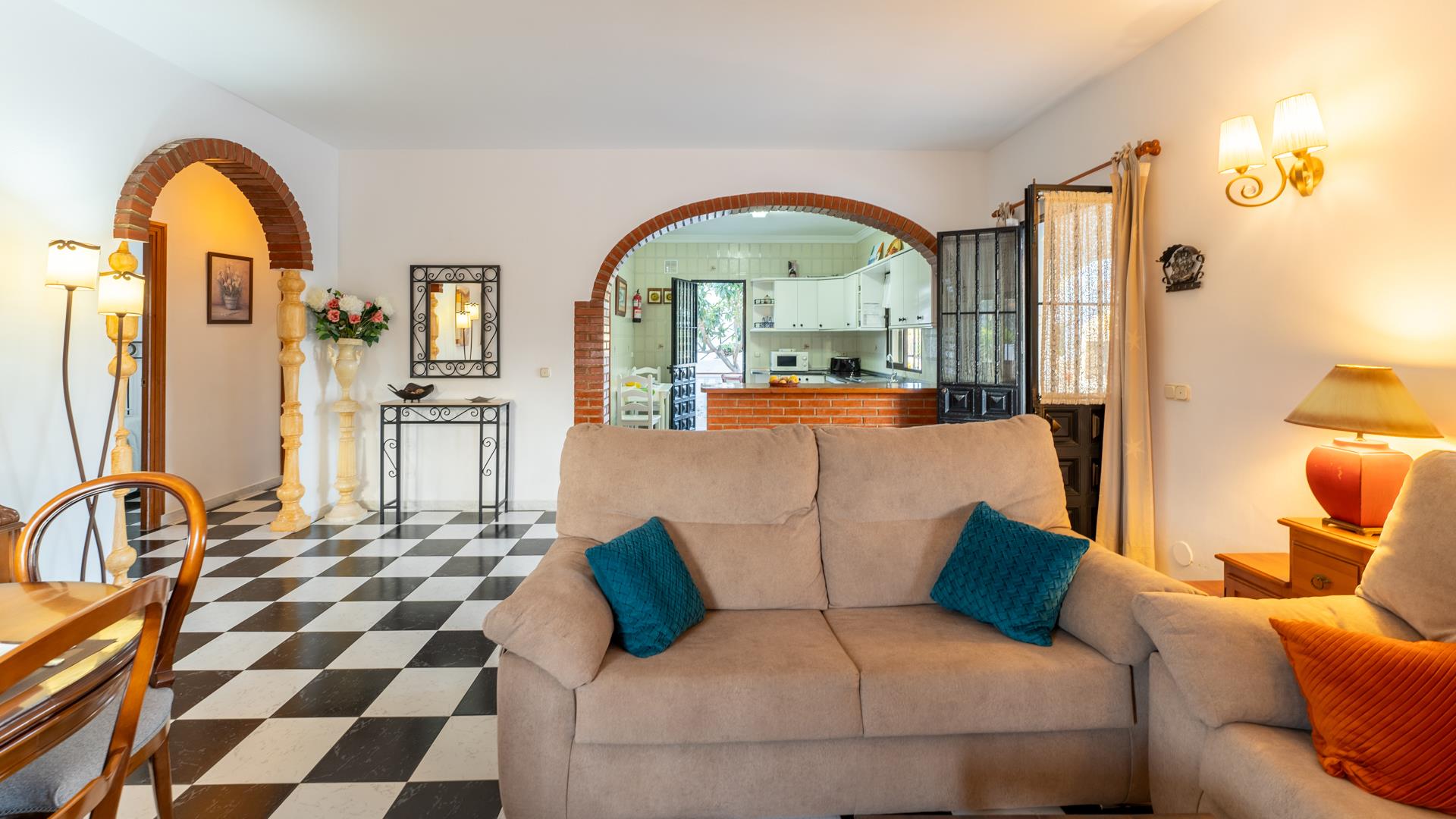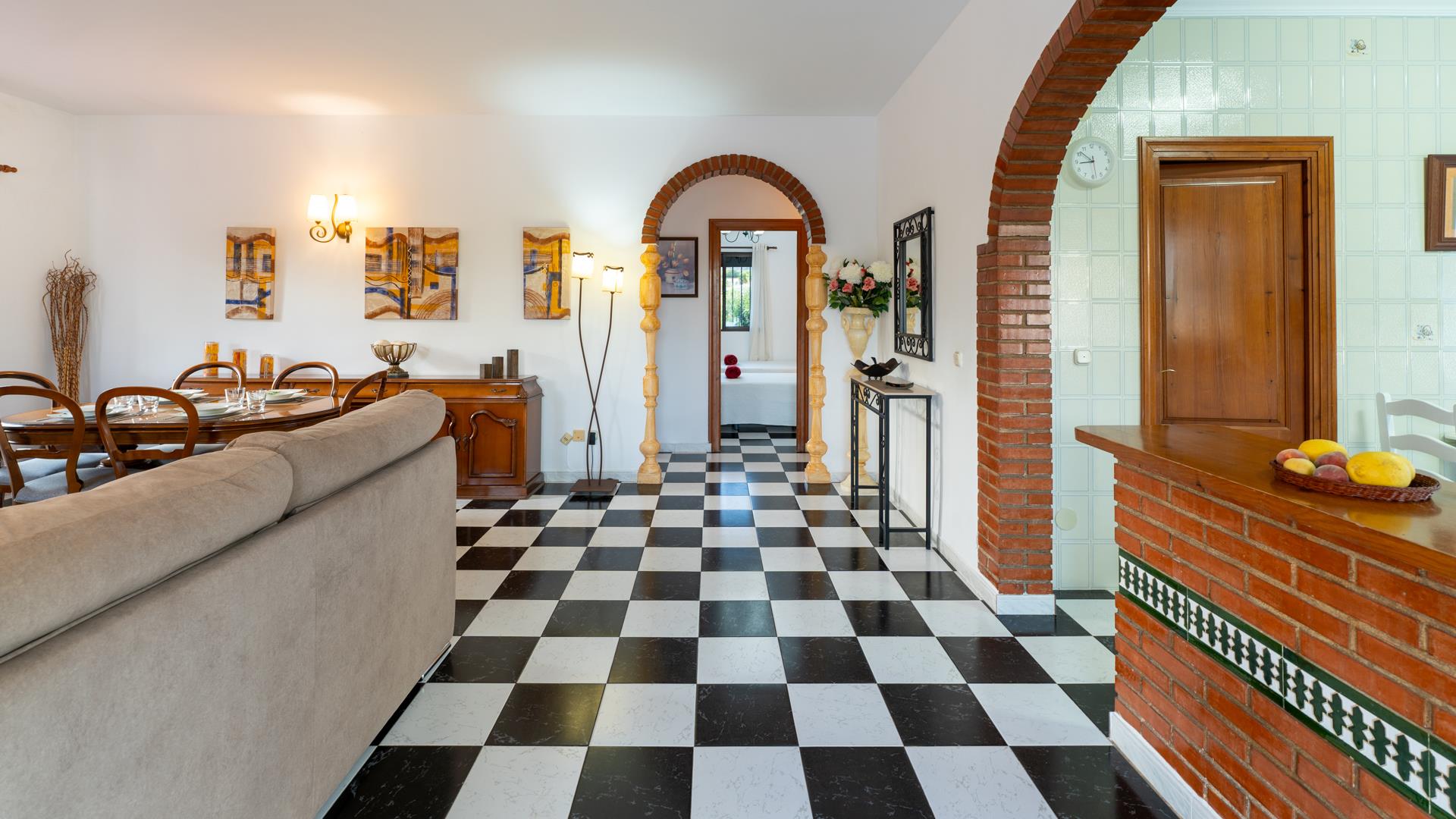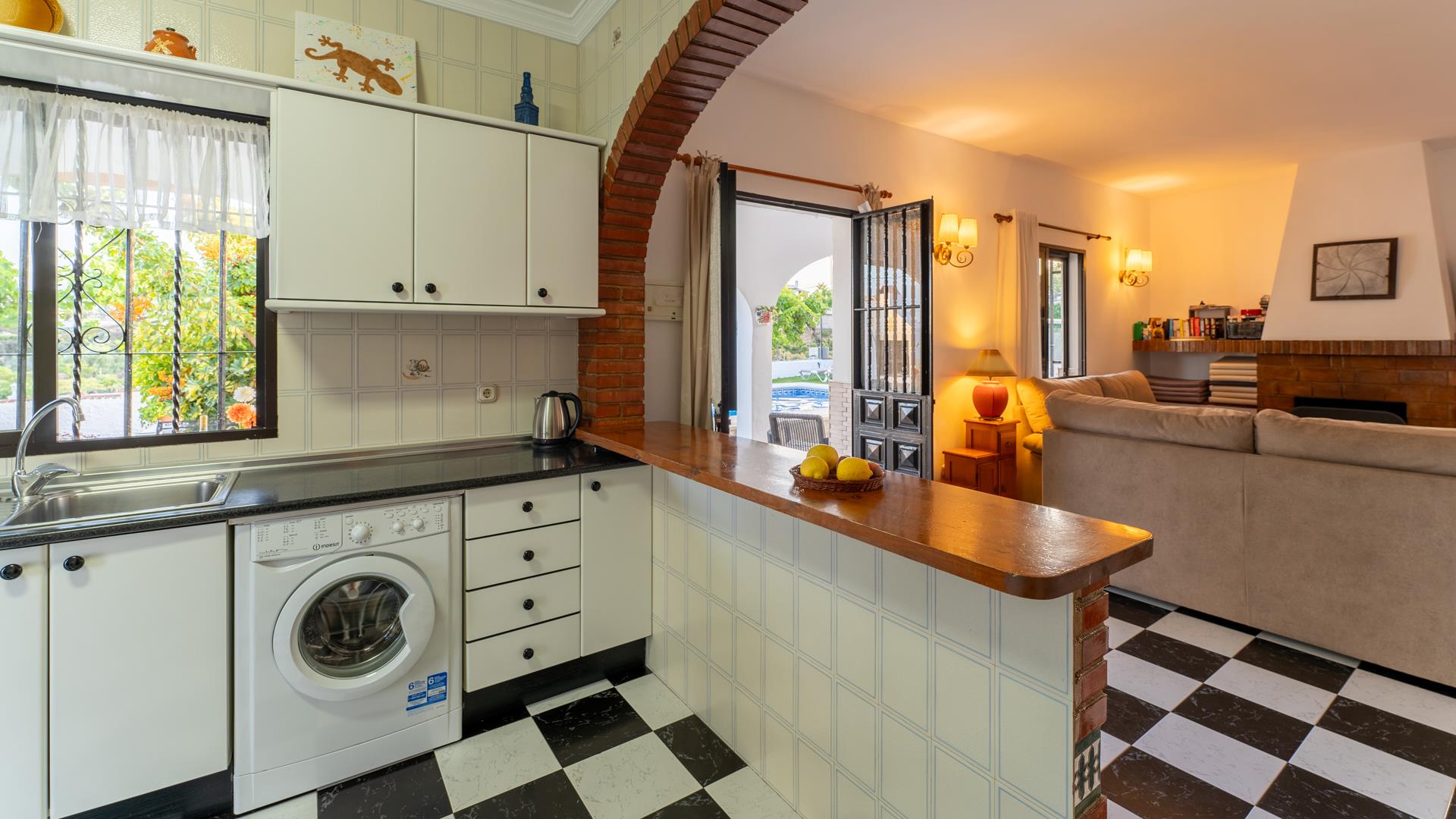 Deze aantrekkelijke villa heeft een gunstige ligging, net buiten de wijk Exotica en 2 kilometer van de stad Nerja. Het landelijke decor en de rustige omgeving worden hier versterkt door het grandioze uitzicht over het omringende landschap. De eigenaren van de villa hebben alle kamers in het huis aantrekkelijk en comfortabel ingericht. Zo is onder meer de van alle moderne gemakken voorziene keuken van de zitkamer gescheiden door een fraaie, in Amerikaanse stijl ontworpen bar en is de zitkamer voorzien van een ruime eethoek.