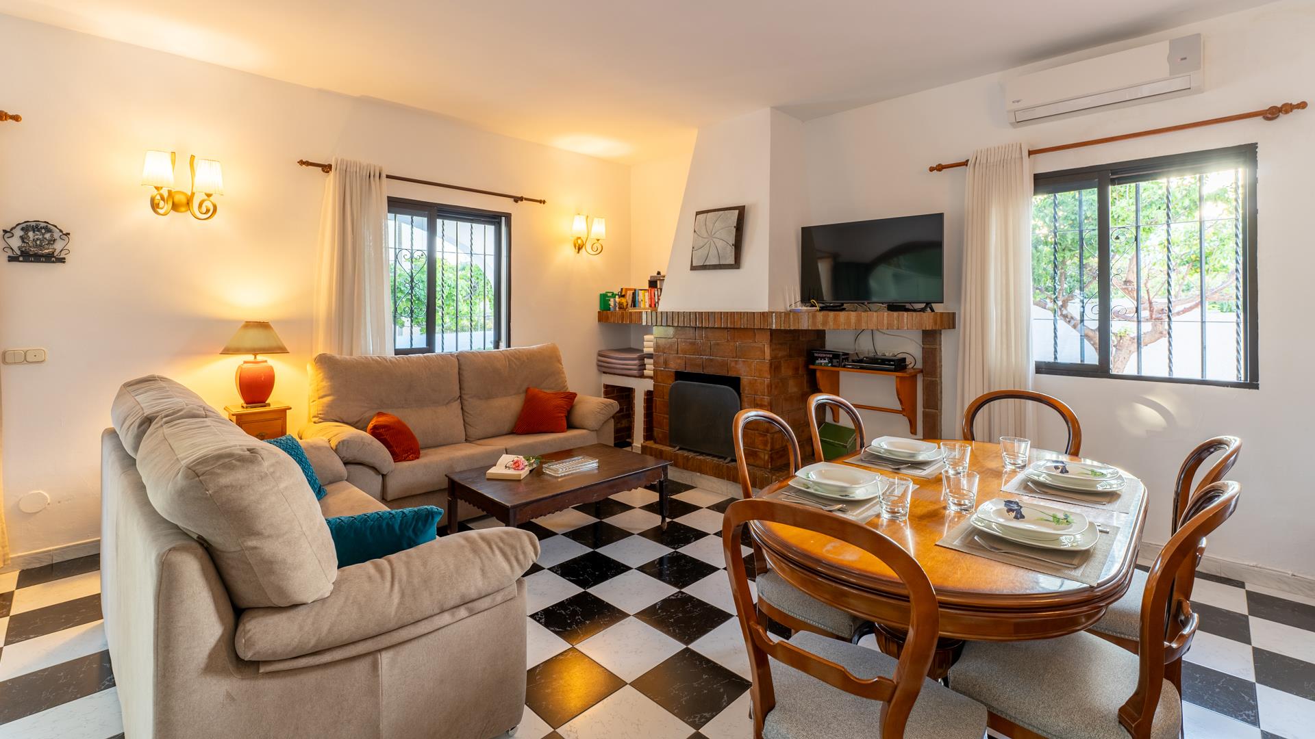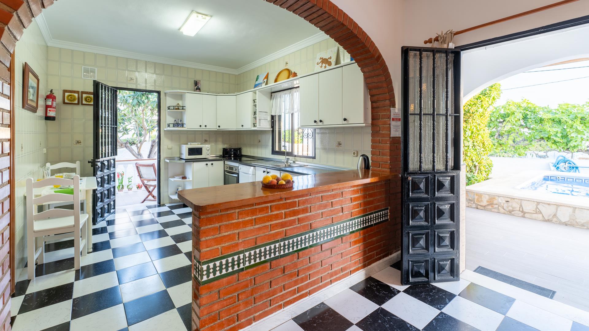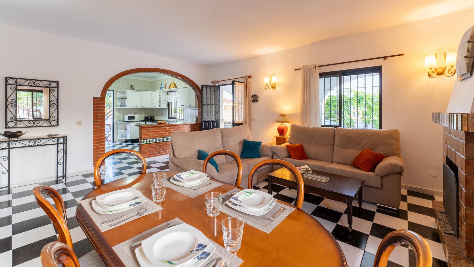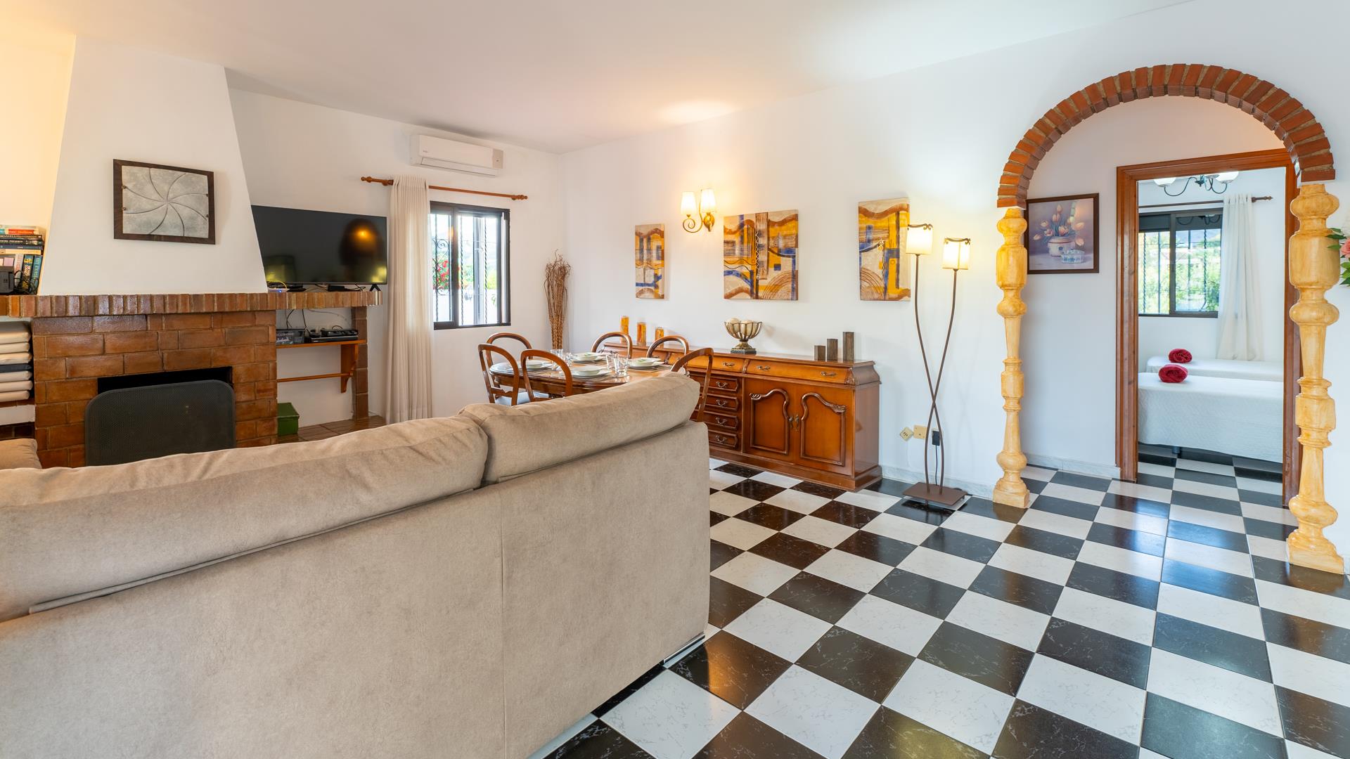 Deze aantrekkelijke villa heeft een gunstige ligging, net buiten de wijk Exotica en 2 kilometer van de stad Nerja. Het landelijke decor en de rustige omgeving worden hier versterkt door het grandioze uitzicht over het omringende landschap. De eigenaren van de villa hebben alle kamers in het huis aantrekkelijk en comfortabel ingericht. Zo is onder meer de van alle moderne gemakken voorziene keuken van de zitkamer gescheiden door een fraaie, in Amerikaanse stijl ontworpen bar en is de zitkamer voorzien van een ruime eethoek.