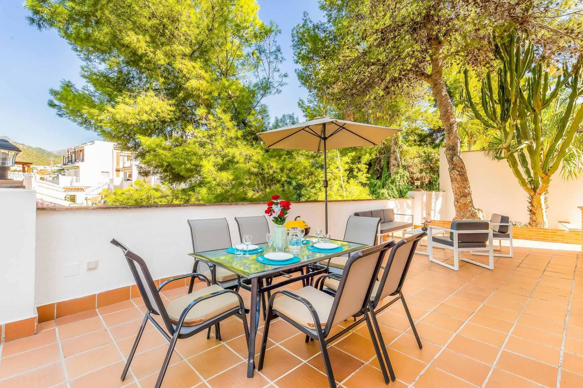 Chimenea is een gewilde wijk, iets ten Oosten van het centrum van Nerja gelegen. De belangrijkste trekpleister is het beroemde Burriana strand; een wandeling van 700 meter bergafwaarts brengt u naar de vele tapasbars en strandtentjes die, behalve heerlijke verse vis, ook de zogenaamde “pescaito frito”, kleine gefrituurde visjes, serveren. In tegenovergestelde richting wandelt u ook zo’n 700 meter naar de grote Supersol supermarkt. Hier vindt u tevens de Racquet Club, mocht u willen tennissen, squashen of paddletennissen.