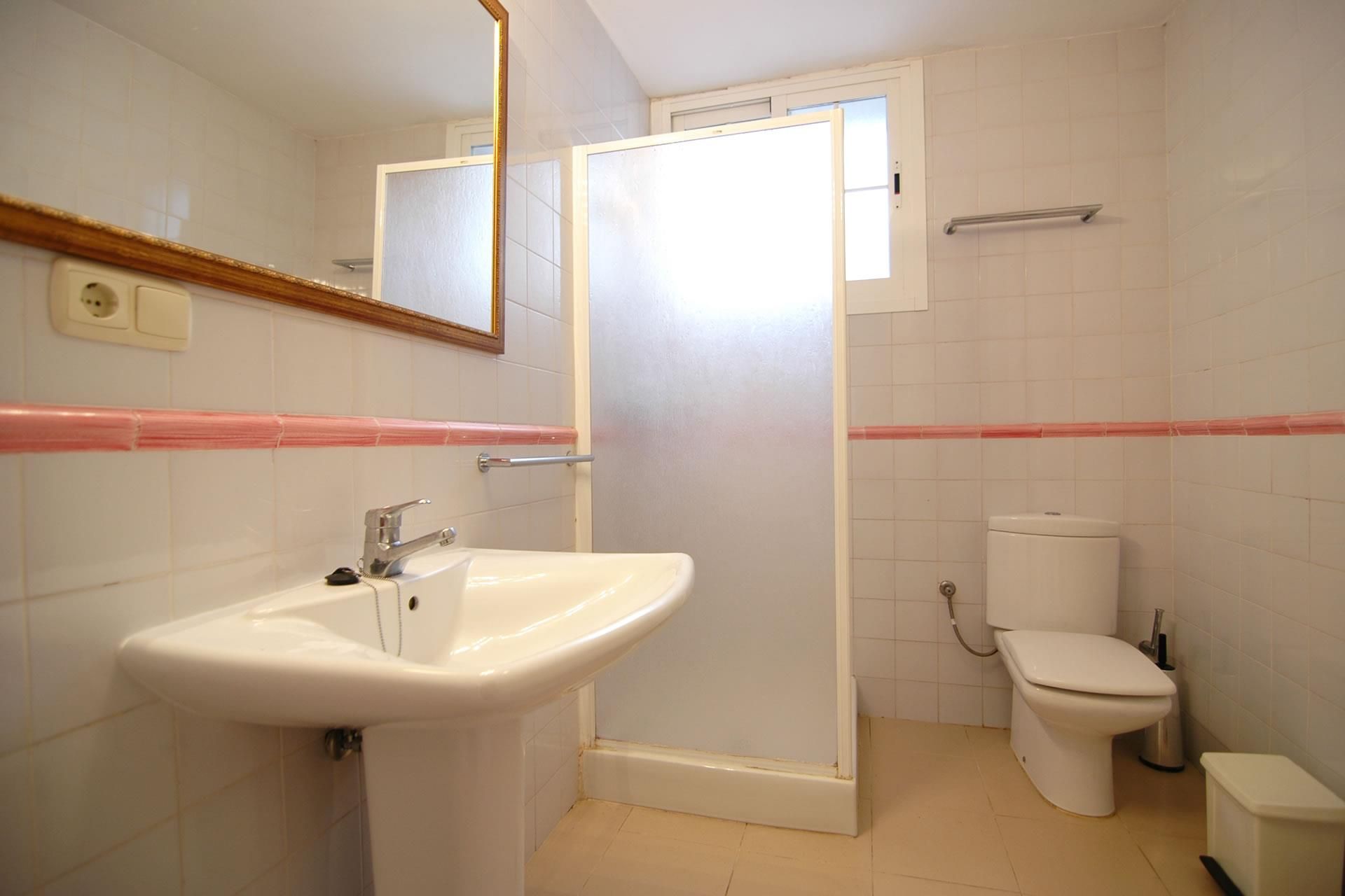 - badkamer met wastafel, douche/badcombinatie en toilet