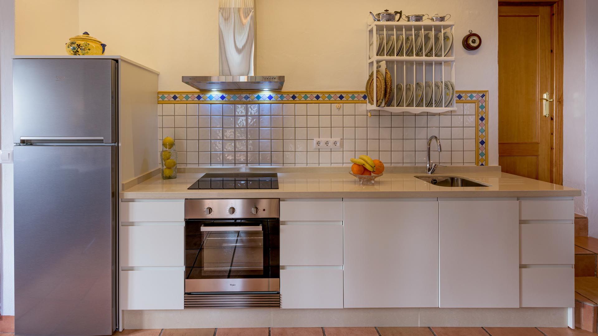 De praktische en goed uitgeruste keuken is voorzien van een koelkast/vriezer, vaatwasser, mini-oven, butaan gasstel, waterketel, koffiezetapparaat, strijkijzer en strijkplank, afzuigkap, rookmelder, sinaasappelpers en alles wat u nodig heeft voor een heerlijke vakantie. De wasmachine staat in een andere ruimte.