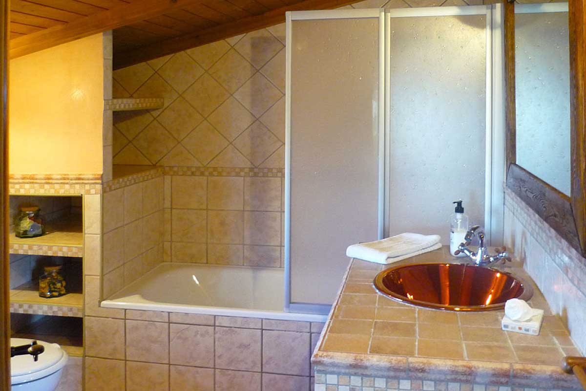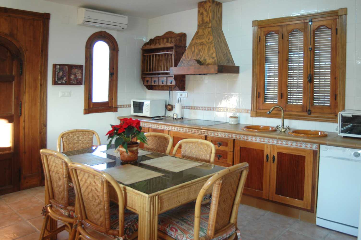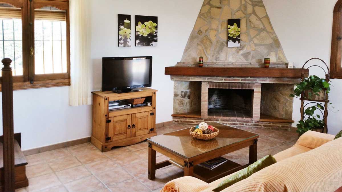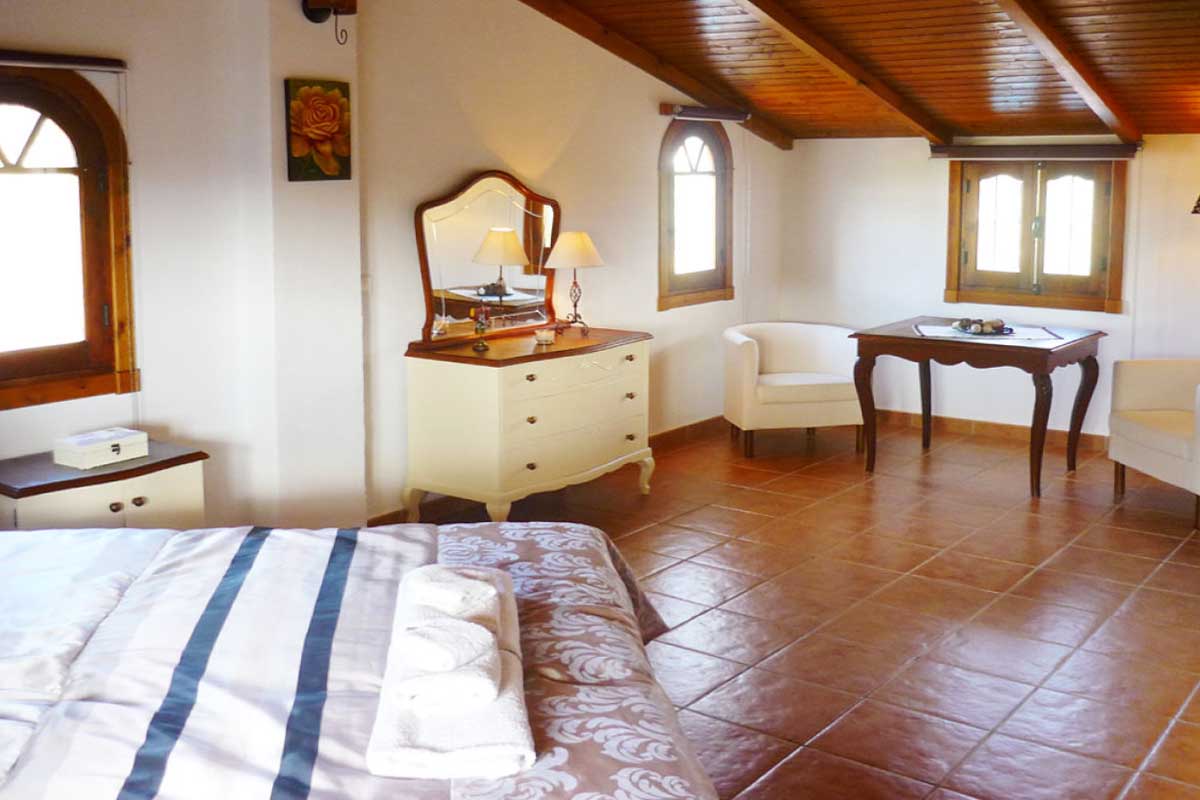 De kleurrijk ingerichte kamers liggen verdeeld over twee verdiepingen en ademen een rustieke sfeer. De zit/eetkamer heeft een open haard, een eettafel voor zes personen, een bank, twee fauteuils en satelliettelevisie. De open keuken is uitgerust met een keramische kookplaat, oven, magnetron, vaatwasser en koelkast/vriezer. De wasmachine staat in de ruimte bij het zwembad. De mooie en ruime ouderslaapkamer is voorzien van een tweepersoonsbed en een eigen badkamer met douche boven het bad, een wastafel en een toilet. De andere twee slaapkamers zijn beide voorzien van twee aparte bedden en delen een doucheruimte met wastafel en toilet.