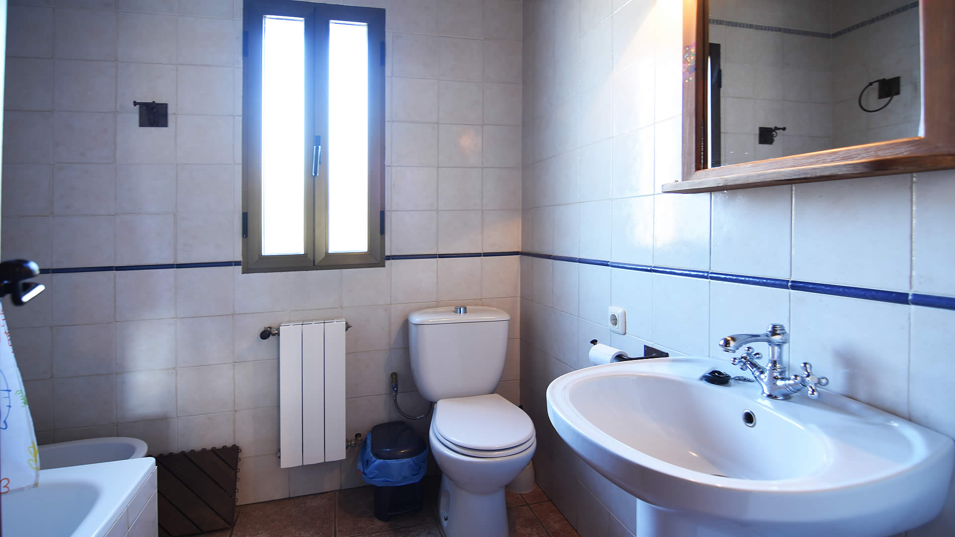- badkamer met wastafel, bad en toilet