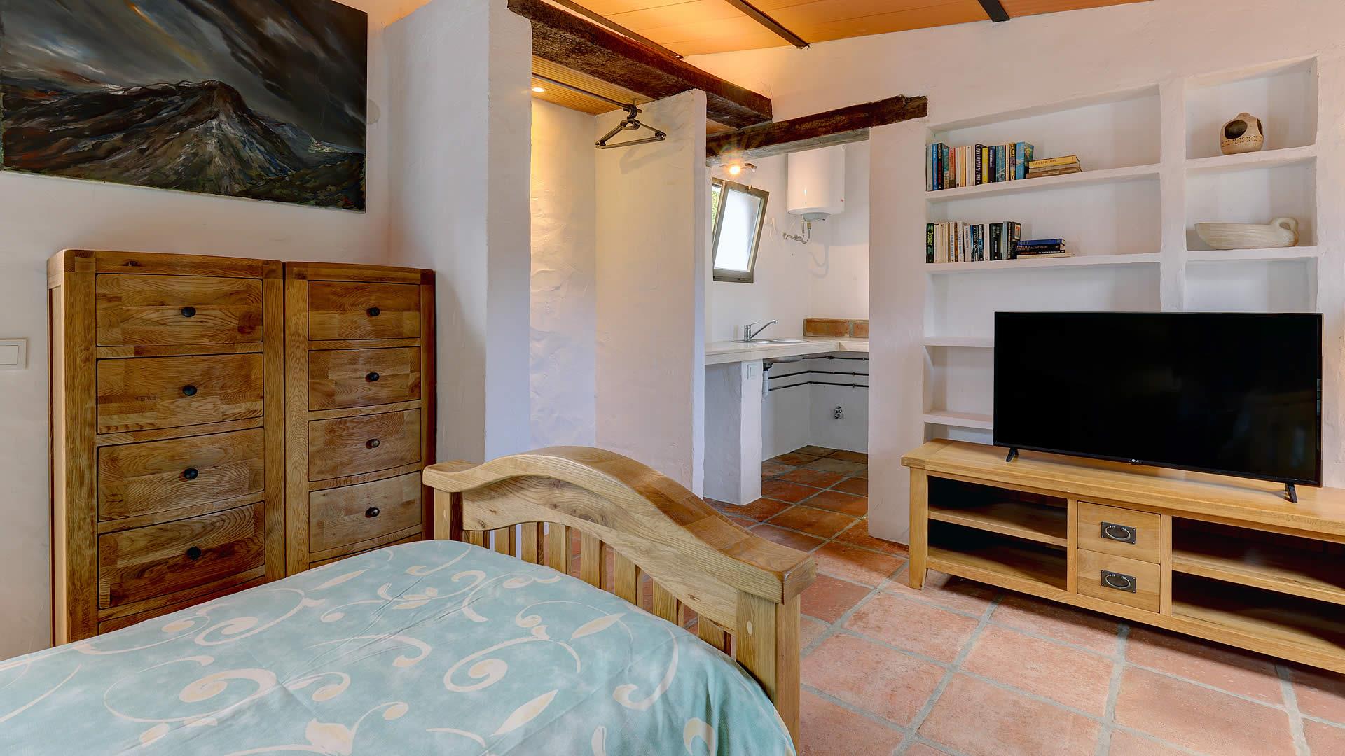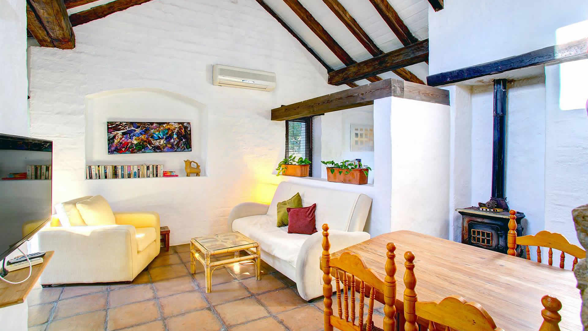 Dit huis ligt iets afgelegen van de andere villa’s en was oorspronkelijk bedoeld als onderkomen tijdens de bouw van de andere villa's. Het mag zijn dat zij wat architectuur betreft minder indrukwekkend oogt dan de andere villa's, zij heeft wel de meeste privacy. Het met druivenranken overdekte terras is een perfect zonnehoekje in de winter, maar ook een schaduwrijk verblijf in de zomerse warmte. De slaapkamer is voorzien van twee aparte bedden, met een eigen douchegelegenheid. Het woongedeelte is voorzien van rondhouten balkenplafonds en een open haard. Een ingebouwde diepe vensterbank is een mooie plek om te genieten van de Sierra Bermeja en kan worden veranderd in een groot éénpersoons bed.