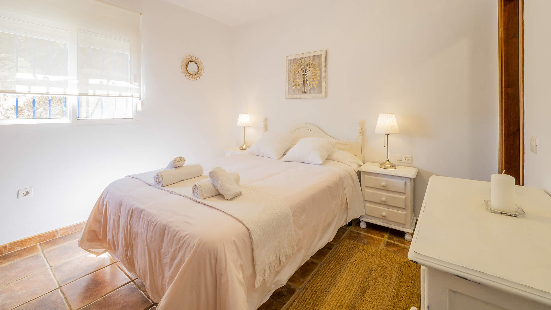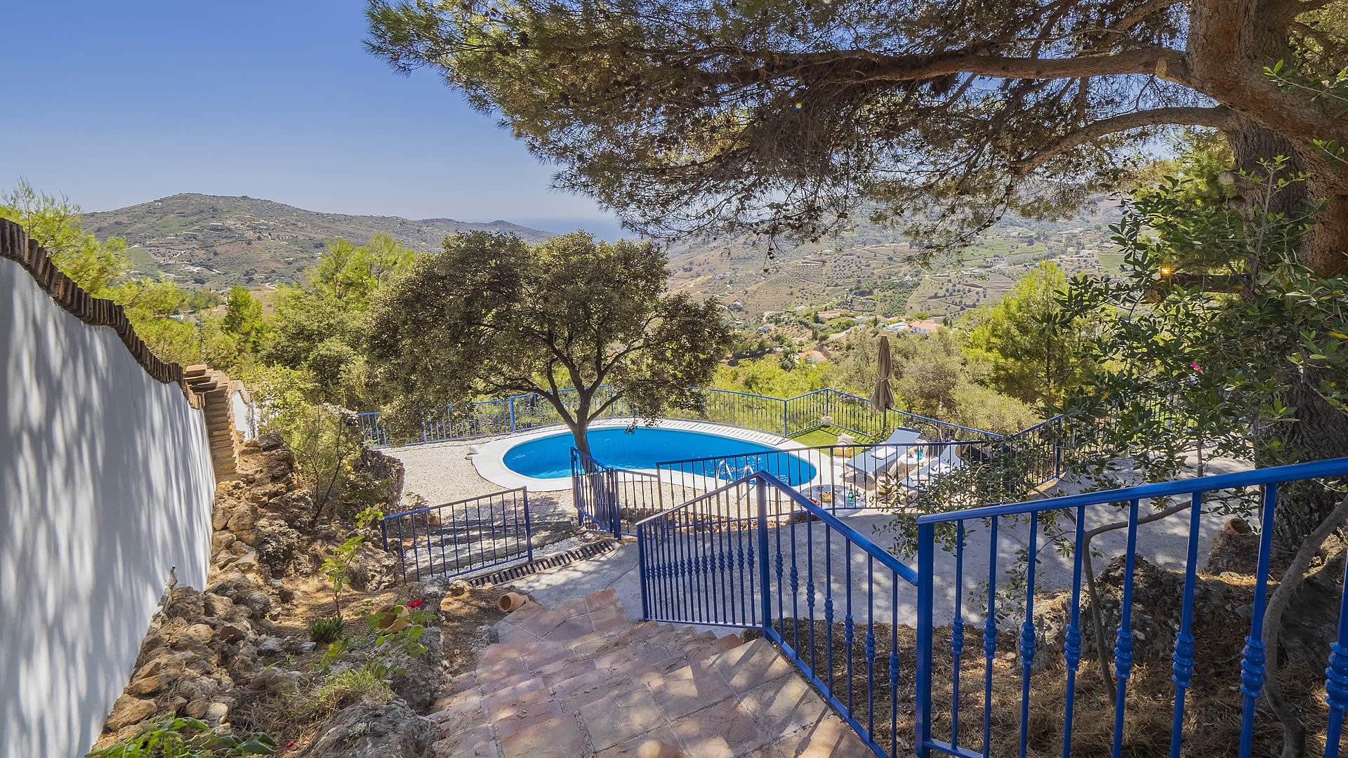 Dit is een mooie, romantische accommodatie. Zij is omringd door eeuwenoude steeneiken, olijf- en pijnbomen en slechts 2 kilometer verwijderd van het dorp Cómpeta. Het huis is gebouwd op een rots bovenop een heuvel, een voortreffelijke ligging met spectaculaire vergezichten over de landelijke omgeving tot aan de zee. Het ovaalvormige privé zwembad van 5 x 2,5 meter en het grote terras zijn schitterende uitkijkposten. Ook met een drankje en een goed boek onder de schaduw van de pijnboom is het hier goed toeven!